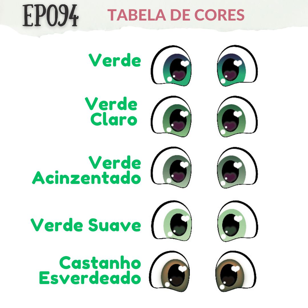 Verde, Verde Claro, Verde Acinzentado, Verde Suave, Castanho Esverdeado e Cartela Mista