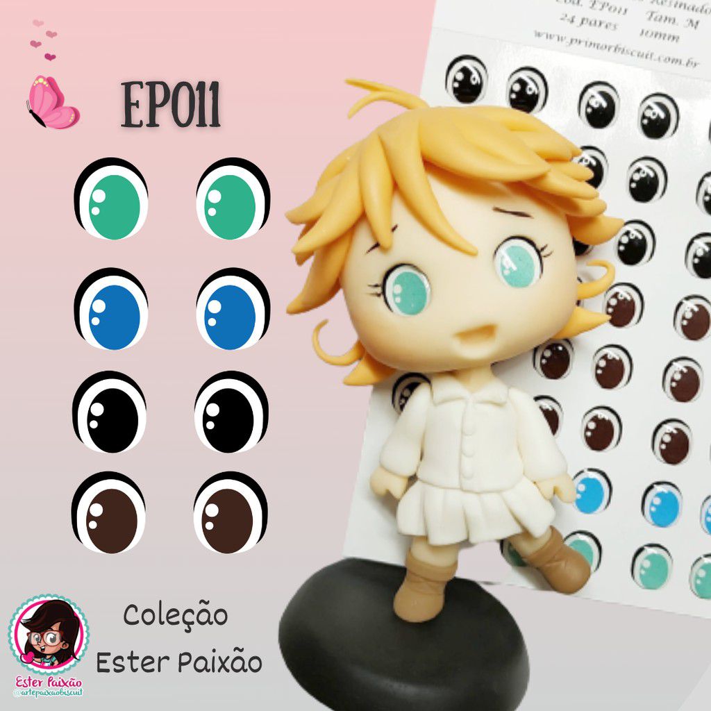 Cartela com olhos adesivos em vinil (já recortados) com uma camada em relevo de resina de alta qualidade. Com proteção UV e à prova d'água.