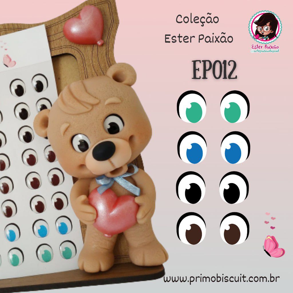 Cartela com olhos adesivos em vinil (já recortados) com uma camada em relevo de resina de alta qualidade. Com proteção UV e à prova d'água.
